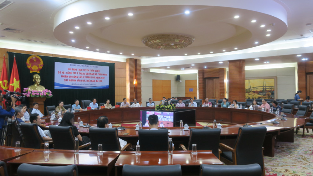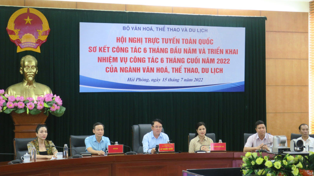 Chiều 15/7, Bộ Văn hóa Thể thao và Du lịch tổ chức Hội nghị trực tuyến sơ kết công tác 6 tháng đầu năm và triển khai nhiệm vụ công tác 6 tháng cuối năm 2022 của ngành Văn hóa, Thể thao và Du lịch. Đồng chí Nguyễn Văn Hùng, Ủy viên Ban chấp hành Trung ương Đảng, Bộ Trưởng Bộ Văn hóa Thể thao và Du lịch chủ trì Hội nghị.