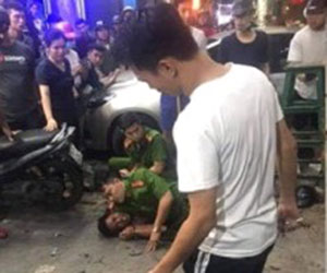 Ngay lập lức cán bộ chiến sĩ có mặt tại hiện trường, tại đây lực lượng chức năng phát hiện một nam thanh niên nghi có biểu hiện “ngáo đá” tay cầm dao đang rất hung hăng đe dọa chém mọi người dân xung quanh, ngay cạnh đó là ông Bùi Hưng Thịnh bị tên này chém trọng thương, máu chảy khắp người…