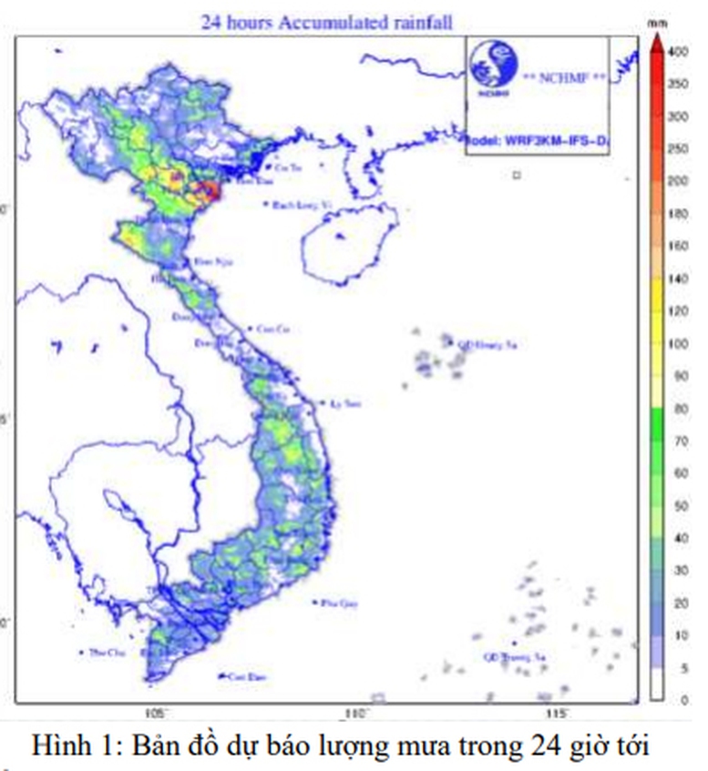 Dự báo diễn biến mưa lớn trong 24 giờ đến 48 giờ tới, Trung tâm cho biết, khu vực Tây Bắc và Việt Bắc: Ngày 11/9, có mưa vừa, mưa to và dông, cục bộ có nơi mưa rất to với lượng mưa phổ biến 20-60 mm, cục bộ có nơi trên 100 mm.