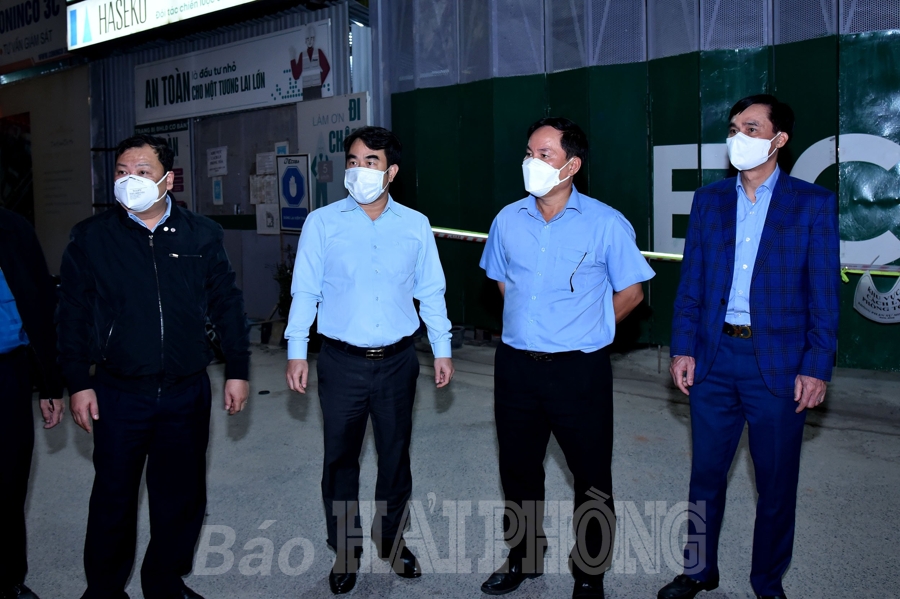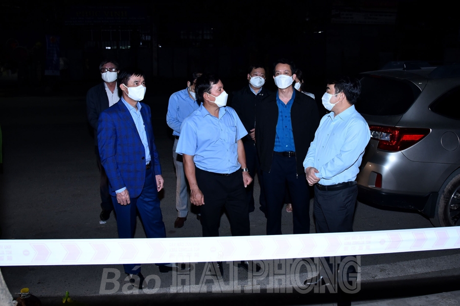 Tối 29/11, đồng chí Lê Ngọc Trữ, Ủy viên Ban Thường vụ Thành ủy, Bí thư Quận ủy Hồng Bàng kiểm tra công tác phòng, chống dịch COVID-19 ở khu vực phong tỏa tại Khu công trường ECOBA, dự án Hoàng Huy, phường Sở Dầu và chợ đầu mối hoa quả phường Sở Dầu (quận Hồng Bàng) cùng 1 hộ dân ở số 330 đường Hùng Vương đang thực hiện cách ly y tế.