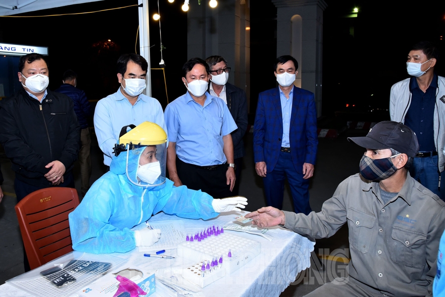 Tại các nơi đến kiểm tra, đồng chí Lê Ngọc Trữ thăm hỏi, động viên các lực lượng làm việc tại chốt kiểm soát dịch, nhân viên y tế thực hiện việc lấy mẫu xét ngiệm. Đồng chí lưu ý, để bảo đảm kiểm soát hiệu quả ổ dịch này, cần đẩy nhanh công tác xét nghiệm đối với các trường hợp liên quan theo từng nhóm nguy cơ; đề nghị Ban Quản lý dự án công trình của Công ty CP đầu tư dịch vụ Hoàng Huy khẩn trương thông báo tất cả các nhà thầu, người lao động có liên quan chủ động khai báo và thực hiện tự cách ly y tế tại nơi ở; tập trung rà soát, lập danh sách người lao động có liên quan gửi chính quyền địa phương để tổ chức xét nghiệm, giám sát theo quy định; chủ động bố trí cung cấp nhu yếu phẩm cần thiết cho người lao động yên tâm tự cách ly y tế tại nơi ở. Đồng chí lưu ý, thời điểm này, quận tổ chức khám sức khỏe nghĩa vụ quân sự, nên các phường cần hướng dẫn công dân khám tuyển tuân thủ nghiêm túc các quy định về phòng dịch, hạn chế tập trung đông người…