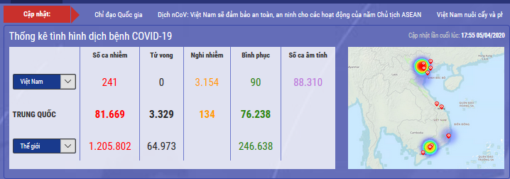 Như vậy tính đến 18 giờ ngày 5/4, Việt Nam đã ghi nhận 241 trường hợp mắc COVID-19; trong đó có 150 người nước ngoài (chiếm 62,2%); 91 người lây nhiễm thứ phát trong đó 61 người từ ổ dịch trong nước.