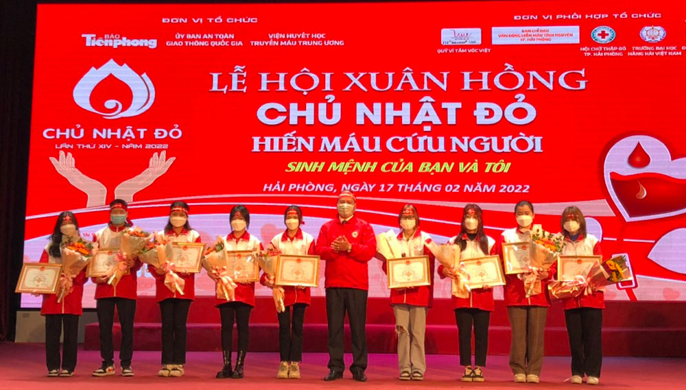 Sáng 17/2, tại Trường Đại học Hàng hải Việt Nam, Thành đoàn – Hội Sinh viên Việt Nam thành phố phối hợp Báo Tiền Phong và Hội Chữ thập đỏ thành phố tổ chức chương trình phát động Ngày “Chủ nhật Đỏ” lần thứ 14 năm 2022 với thông điệp “Hiến máu cứu người – Sinh mệnh của bạn và tôi”.