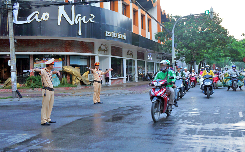 Trực tiếp chỉ huy công tác đảo chiều giao thông trên các tuyến Hoàng Văn Thụ và Đinh Tiên Hoàng, Thượng tá Trần Thanh Hải, Phó trưởng Phòng CSGT Đường bộ – Đường sắt (PC08), Công an thành phố cho biết: Thực hiện chỉ đạo của Giám đốc Công an Thành phố; rút kinh nghiệm từ khi thay đổi tổ chức giao thông (đảo chiều) đường Cầu Đất và một số tuyến đường nội đô, Phòng PC08 đã xây dựng phương án huy động lực lượng, phương tiện, trang thiết bị kỹ thuật nghiệp vụ duy trì thường xuyên, liên tục chốt điểm tại 11 vị trí trọng yếu là các ngã 4 như: Trần Phú – Cầu Đất; Hoàng Văn Thụ – Quang Trung; Hoàng Văn Thụ – Kỳ Đồng; Hoàng Văn Thụ – Trần Quang Khải; Hoàng Văn Thụ – Điện Biên Phủ… Nhiệm vụ của lực lượng chốt điểm làm nhiệm vụ hướng dẫn, điều tiết, phân luồng; phòng ngừa ùn tắc, tai nạn giao thông khu vực. Đồng thời bố trí 2 tổ tuần tra, kiểm soát. Trong đó, tổ 1 thực hiện TTKS trên các tuyến: Hoàng Văn Thụ, Đinh Tiên Hoàng, Điện Biên Phủ. Tổ số 2 làm nhiệm TTKS trên các tuyến: Nguyễn Đức Cảnh, Trần Phú, Trần Hưng Đạo, Quang Trung. Các tổ TTKS làm nhiệm vụ hướng dẫn, điều tiết, phân luồng; phòng ngừa ùn tắc, tai nạn giao thông; giải quyết triệt để phương tiện dừng, đỗ gây cản trở giao thông.