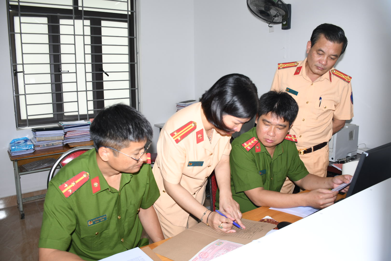 Thực hiện Quyết định của Giám đốc CATP Hải Phòng về việc phân công, phân cấp công tác đăng ký, cấp biển số xe ô tô, mô tô trong Công an thành phố. Sáng ngày 21/5/2022, Phòng CSGT đường bộ, đường sắt – CATP Hải Phòng phối hợp với Phòng Tham mưu chủ trì cùng đại diện Lãnh đạo Phòng Hướng dẫn, đào tạo, sát hạch, quản lý giấy phép của người điều khiển phương tiện giao thông – Cục CSGT – Bộ Công an kiểm tra công tác triển khai thực hiện phân cấp đăng ký xe ô tô, mô tô tại Công an huyện An Dương, Công an xã Bắc Sơn, Công an xã Đại Bản – huyện An Dương.