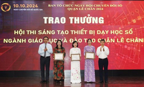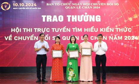 Sáng 8/10, UBND quận Lê Chân tổ chức Ngày hội Chuyển đổi số quận năm 2024. Tới dự có các đồng chí: Trần Thu Hương, Ủy viên Thành ủy, Bí thư Quận ủy; Bùi Văn Kiệm, Giám đốc Sở Giáo dục và Đào tạo; Vũ Đại Thắng, Phó Giám đốc Sở Thông tin và Truyền thông.