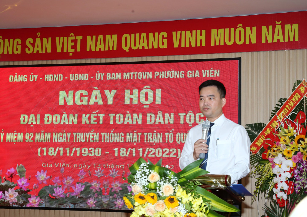 Hòa chung không khí tưng bừng, phấn khởi của Ngày hội Đại đoàn kết toàn dân tộc, Đảng bộ, chính quyền và Nhân dân phường Gia Viên cùng ôn lại truyền thống 92 năm Ngày truyền thống MTTQ Việt Nam, đánh giá kết quả thực hiện cuộc vận động “Toàn dân đoàn kết xây dựng nông thôn mới, đô thị văn minh” năm 2022 và các phong trào thi đua yêu nước của địa phương. Trong đó, tập trung đẩy mạnh công tác tuyên truyền, vận động nhân dân thực hiện tốt chủ trương, đường lối, chính sách của Đảng, Nhà nước và của địa phương; xây, sửa nhà tặng các hộ gia đình có hoàn cảnh khó khăn, các hoạt động nhân đạo từ thiện khác; giữ gìn vệ sinh môi trường, trật tự đường hè.
