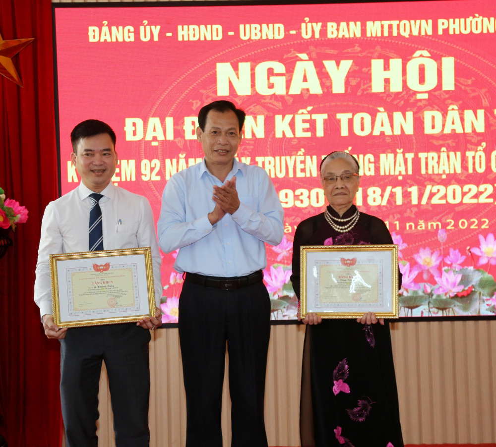 Nhân dịp này, 1 tập thể và 2 cá nhân có thành tích xuất sắc được nhận Bằng khen của Ủy ban MTTQ Việt Nam thành phố; 6 tập thể, 6 cá nhân được nhận Giấy khen của Ủy ban MTTQ Việt Nam quận Ngô Quyền; 5 tổ dân phố được UBND quận Ngô Quyền công nhận danh hiệu “Tổ dân phố văn hóa” năm 2022; 3 tập thể và 6 cá nhân được Ban tổ chức cuộc thi học tập và làm theo tấm gương đạo đức Hồ Chí Minh trao giải.