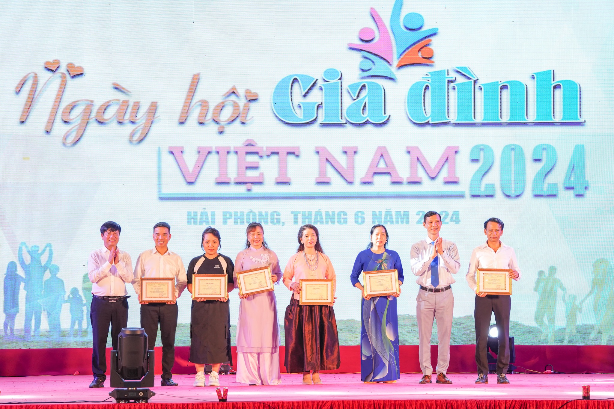 Để ghi nhận những thành tích tham gia đóng góp vào thành công của “Ngày hội Gia đình Việt Nam năm 2024”, Bộ Văn hóa, Thể thao và Du lịch tặng Bằng khen cho 10 tập thể; Trung tâm Triển lãm văn hóa nghệ thuật Việt Nam tặng Giấy khen cho 7 tập thể và 8 cá nhân. Ban Tổ chức trao tặng 1 giải Xuất sắc, 2 giải Nhất, 3 giải Nhì, 10 giải Ba, 6 giải phụ cho các tiết mục tham gia Liên hoan Nghệ thuật quần chúng “Niềm vui gia đình”; Hội Nghệ sĩ Múa Hà Nội trao tặng 2 giải thưởng cho các đơn vị tham gia Liên hoan.