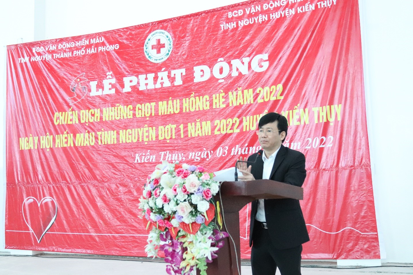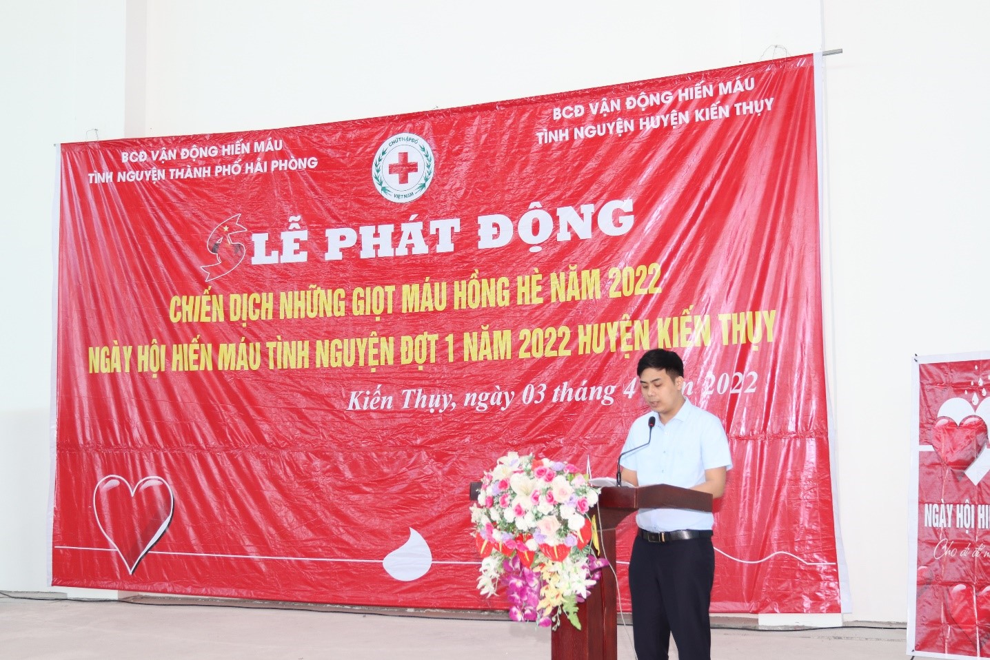 Sáng 3/4, Ban Chỉ đạo vận động Hiến máu tình nguyện thành phố phối hợp với Hội Chữ thập đỏ thành phố, Ủy ban nhân dân huyện Kiến Thụy tổ chức Lễ phát động chiến dịch “Những giọt máu hồng hè năm 2022” và “Ngày hội hiến máu tình nguyện” đợt 1 năm 2022 trong cán bộ, công chức, viên chức, chiến sĩ lực lượng vũ trang, tình nguyện viên tham gia hiến máu trên địa bàn huyện.