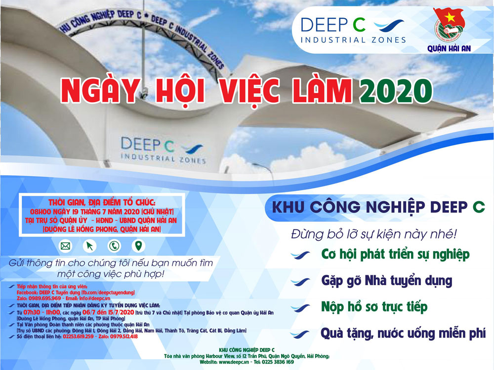 Ngày hội do Quận đoàn Hải An và Khu công nghiệp DEEP C Đình Vũ Hải Phòng phối hợp tổ chức, có sự tham gia của 12 doanh nghiệp tại Khu công nghiệp DEEP C, tuyển dụng trên 200 lao động, tuyển dụng các vị trí như: Kỹ sư điện, kỹ sư cơ khí, kỹ sư bảo trì, thợ cơ khí, thợ lắp kết cấu thép, công nhân gá lắp, kỹ thuật cơ khí, lái xe nâng kho, kế toán tổng hợp, kế toán thuế, nhân sự, thợ sửa chữa ô tô, lái xe bồn xi măng, nhân viên logistic, nhân viên kinh doanh, thủ kho…