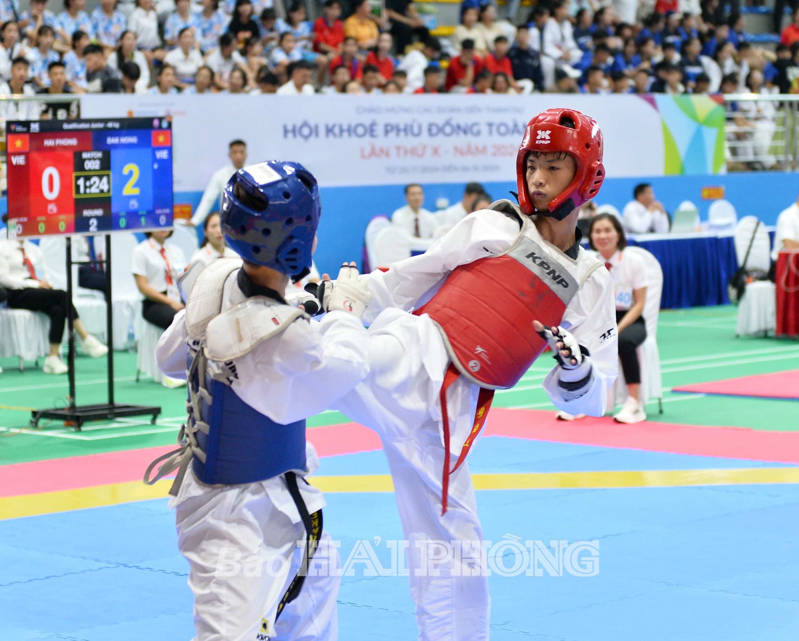 Ngày thi đấu thứ 2, Hội khoẻ Phù Đổng toàn quốc lần thứ 10 năm 2024 chứng kiến các môn võ khởi động thi đấu. Tại nhà thi đấu trường Đại học Hàng Hải Việt Nam, các nội dung cá nhân môn Taekwondo diễn ra sôi nổi, hào hứng ở 11 hạng cân của nam và nữ của học sinh Trung học phổ thông.