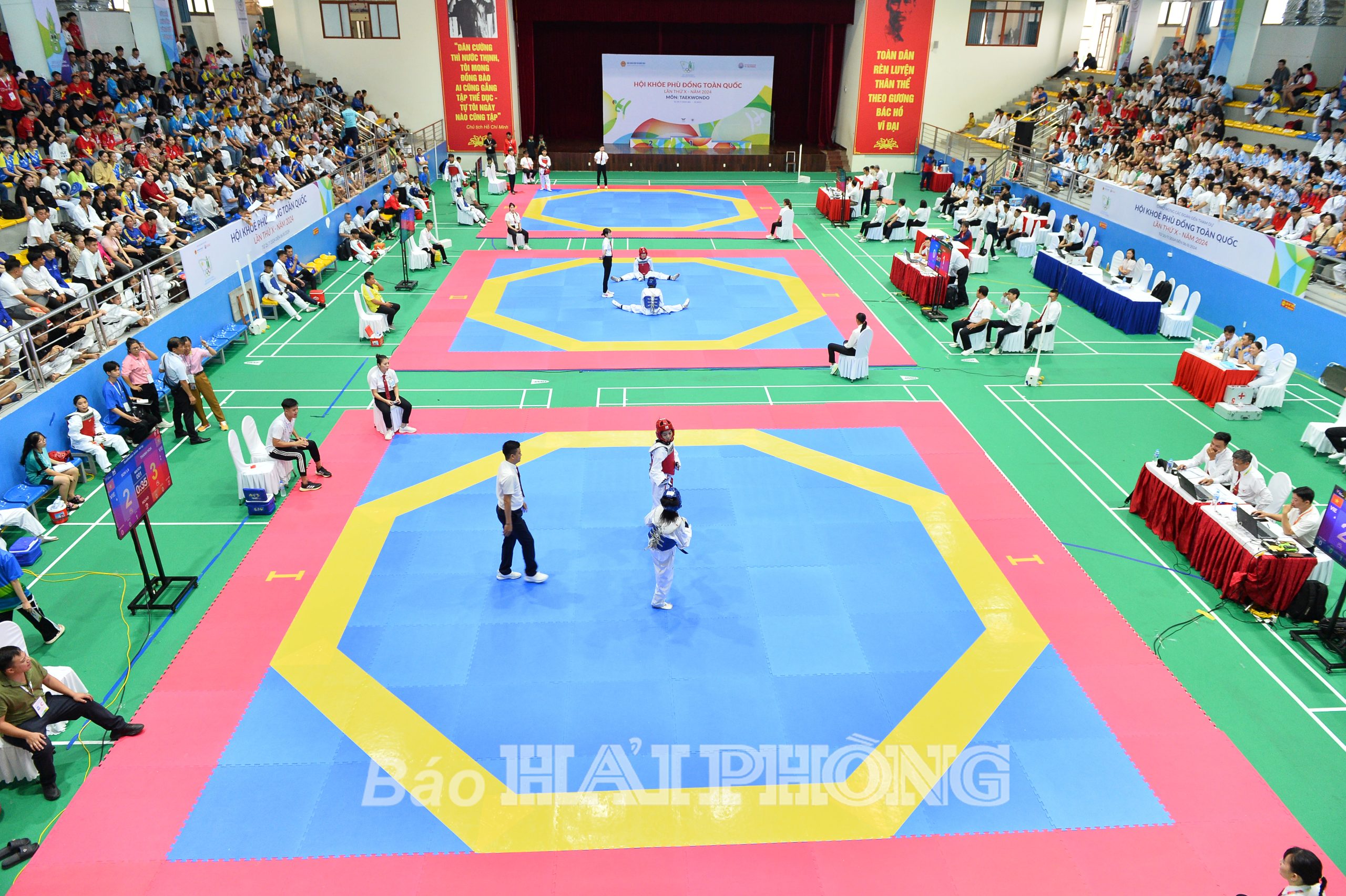 Các nội dung thi đấu môn Taekwondo diễn ra tại nhà thi đấu trường Đại học Hàng Hải Việt Nam.Trận thi đấu giữa VĐV Hải Phòng (giáp đỏ) và VĐV tỉnh Đắk Nông.Trận đâú quyết liệt giữa VĐV tỉnh Sơn La (giáp xanh) và VĐV tỉnh Thanh Hoá.Trận đâú quyết liệt giữa VĐV tỉnh Sơn La (giáp xanh) và VĐV tỉnh Thanh Hoá.