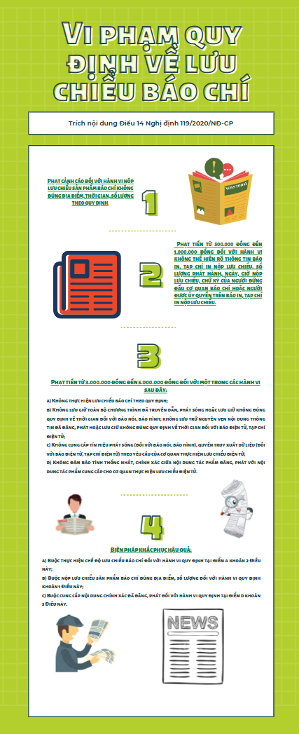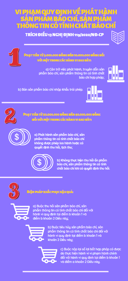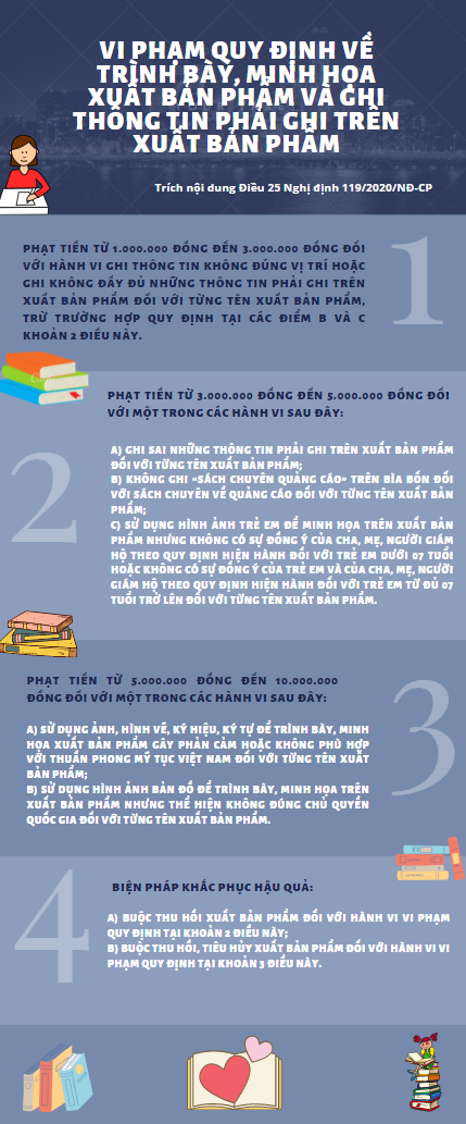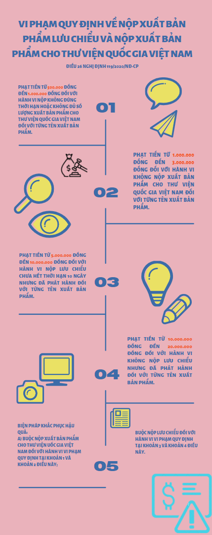 Đối với mỗi hành vi vi phạm hành chính trong hoạt động báo chí, hoạt động xuất bản, cá nhân, tổ chức vi phạm phải chịu một trong các hình thức xử phạt chính là cảnh cáo hoặc phạt tiền.