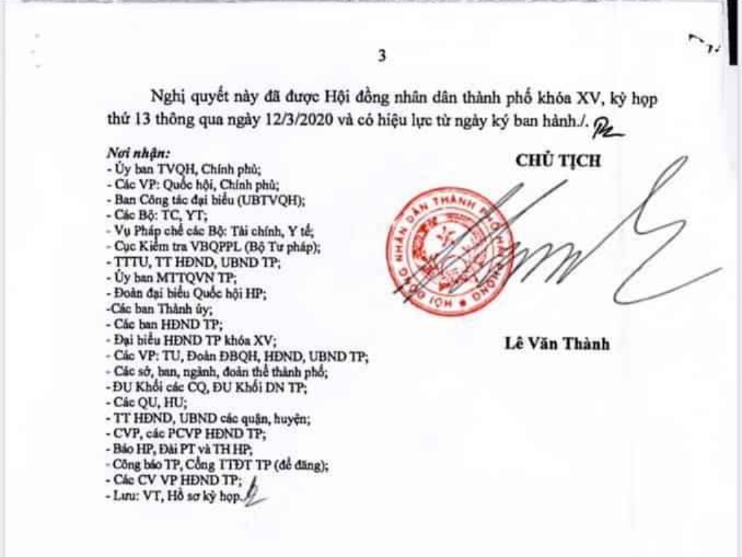 Hội đồng nhân dân thành phố đã ban hành Nghị quyết số 11/2020/NQ-HĐND ngày 12/3/2020 về một số nhiệm vụ, giải pháp phòng chống dịch Covid-19, ổn định tình hình kinh tế – xa hội thành phố.