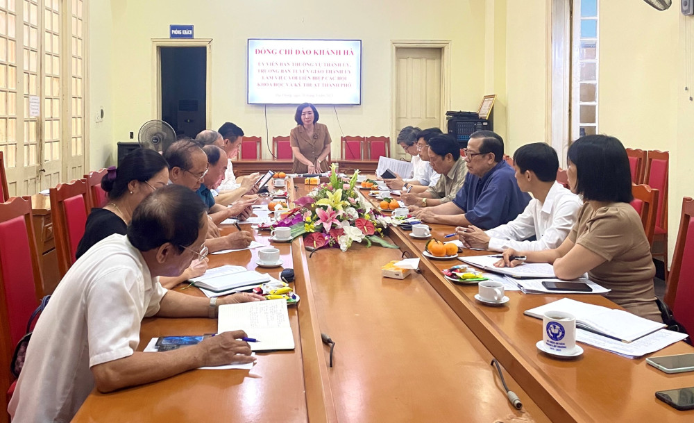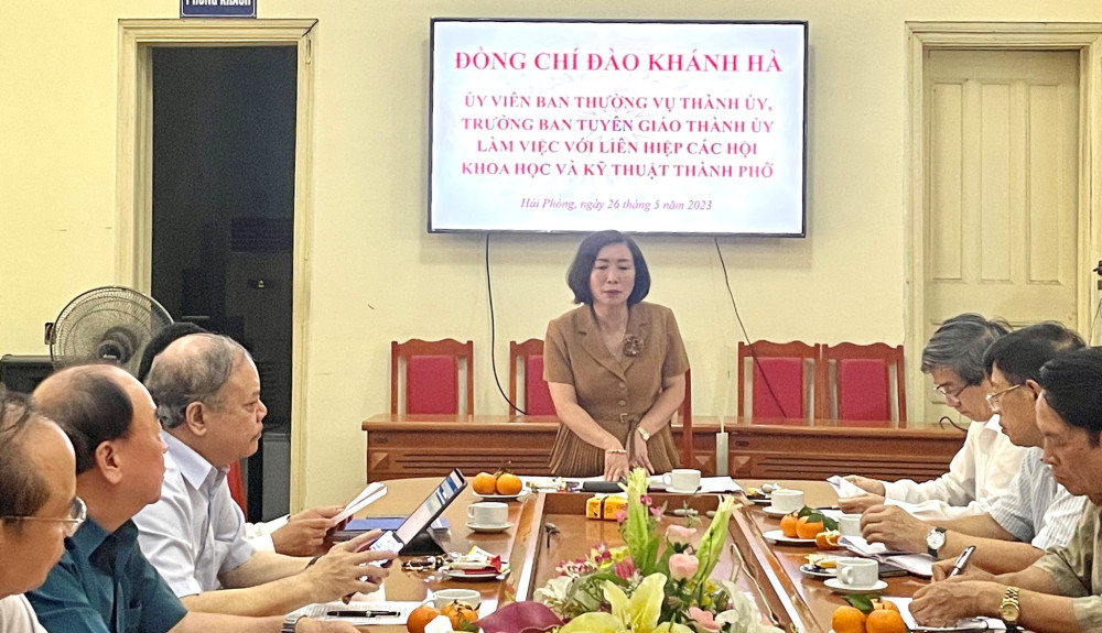 Sáng 26/5, đồng chí Đào Khánh Hà, Ủy viên Ban Thường vụ Thành ủy, Trưởng Ban Tuyên giáo Thành ủy chủ trì buổi làm việc với Đảng đoàn Liên hiệp các Hội Khoa học và Kỹ thuật thành phố (gọi tắt là Liên hiệp hội) về công tác lãnh đạo, chỉ đạo trong thực hiện các Chỉ thị, Nghị quyết, Văn bản của Trung ương, Thành ủy; kết quả hoạt động từ đầu nhiệm kỳ (2019-2024) đến nay. Cùng dự có đại diện lãnh đạo các Sở, ngành liên quan.