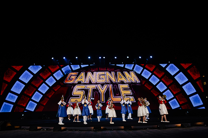 Trên giai điệu GangNam Style thân thuộc, nổi tiếng, các em nhỏ Hàn Quốc đem đến sắc thái mới mẻ, khán giả như được hoà mình vào giai điệu vui vẻ, hiện đại.