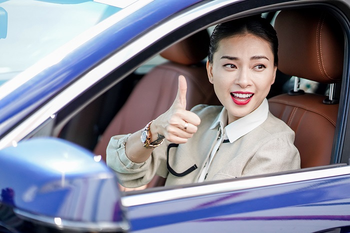 Ngô Thanh Vân ra hiệu dấu tay “like” sau khi ngồi lái thử chiếc VinFast Lux A2.0 trong khuôn viên nhà máy VinFast tại Hải Phòng. “Quá đã”; “Xe chất”; “Xé gió mà đi”, “Yêu ngay từ lần cầm lái đầu tiên”, nữ diễn viên không tiếc lời khen ngợi chiếc xe thương hiệu Việt.