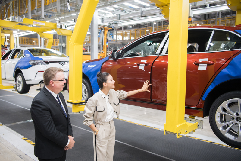 Trước đó, Ngô Thanh Vân cũng đã đi thăm quan dây chuyền sản xuất ô tô VinFast – hiện đại hàng đầu Đông Nam Á. Tại xưởng hàn với hàng nghìn robot ABB được lập trình tự động hoá hoàn toàn, nữ diễn viên thốt lên: “Phải nói tôi sởn da gà khi được thấy quy mô và mức độ hiện đại của nhà máy VinFast”.
