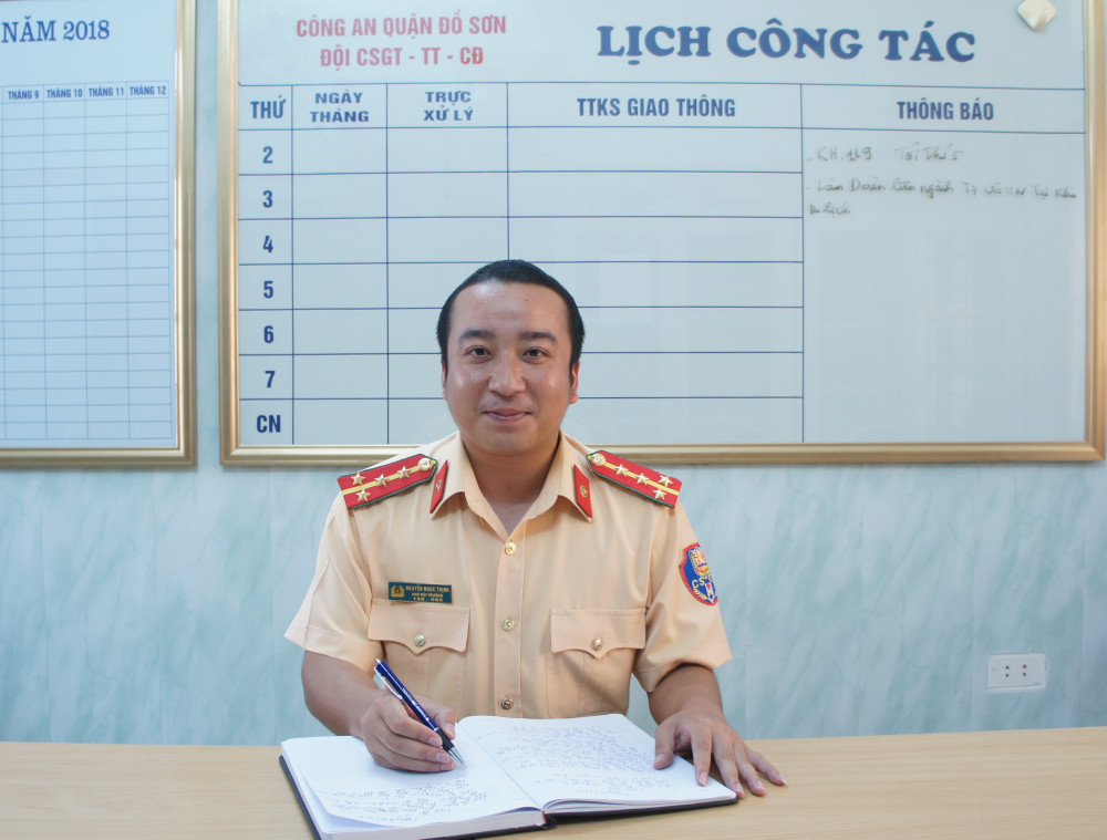 Gần 4 năm công tác tại Đội CSGT – TT-CĐ Công an quận Đồ Sơn, Đại úy Nguyễn Ngọc Thịnh, Phó Đội trưởng Đội CSGT – TT- CĐ không chỉ là một cán bộ trẻ, năng động, nhiệt tình mà còn luôn nêu cao tinh thần trách nhiệm, không ngừng học hỏi nâng cao trình độ, phấn đấu rèn luyện để hoàn thành xuất sắc công việc được giao.