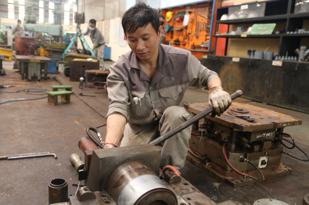 Khu vực chế tác của những người thợ nguội Nhà máy phụ tùng, Công ty CP Nhựa Thiếu niên Tiền Phong được bố trí ở cuối dãy nhà xưởng. Anh Bùi Văn Thức, Chủ tịch Công đoàn nhà máy, Tổ trưởng Tổ sửa chữa khuôn đưa tôi đến gặp anh Mai Sĩ Thượng, người thợ nguội tài hoa của Nhà máy có những sáng kiến kỹ thuật, ý tưởng sáng tạo góp phần làm lợi hàng trăm triệu đồng cho đơn vị.