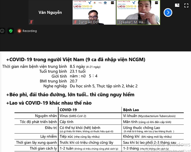 Thông tin trên được các chuyên gia của Nhật Bản và Việt Nam đưa ra tại hội thảo trực tuyến “Phòng chống lao và COVID-19 cho người Việt Nam đang sinh sống tại Nhật Bản” do VANJ phối hợp tổ chức ngày 24/4 cùng các bên liên quan gồm Nhóm Y học cộng đồng, Hiệp hội phòng chống lao của Nhật Bản (JATA) , Trung tâm Sức khỏe Toàn cầu (NCGM).