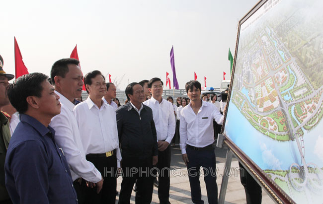 Đồng chí Nguyễn Tấn Dũng, nguyên Thủ tướng Chính phủ chúc mừng những kết quả, thành tựu đạt được của thành phố trong thời gian qua với nhiều kết quả nổi bật toàn diện trên các lĩnh vực; đồng thời bày tỏ ấn tượng, vui mừng trước sự thay đổi, phát triển nhanh chóng của đô thị thành phố Hải Phòng. Đồng chí chúc Đảng bộ, chính quyền, quân và dân thành phố Hải Phòng sẽ tiếp tục phát triển mạnh mẽ, thực hiện thắng lợi Nghị quyết số 45 của Bộ Chính trị về xây dựng và phát triển thành phố Hải Phòng đến năm 2030, tầm nhìn đến năm 2045, sớm trở thành thành phố công nghiệp văn minh, hiện đại.