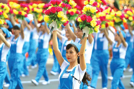 Diễu hành tại lễ kỷ niệm 40 năm giải phóng miền Nam, thống nhất đất nước, tổ chức ngày 30-4-2015 ở TP HCM. Ảnh: HOÀNG TRIỀU