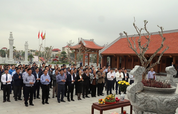 Các đồng chí Lãnh đạo thành phố và cơ quan, doanh nghiệp dâng hương tại Nhà tưởng niệm đồng chí Nguyễn Đức Cảnh