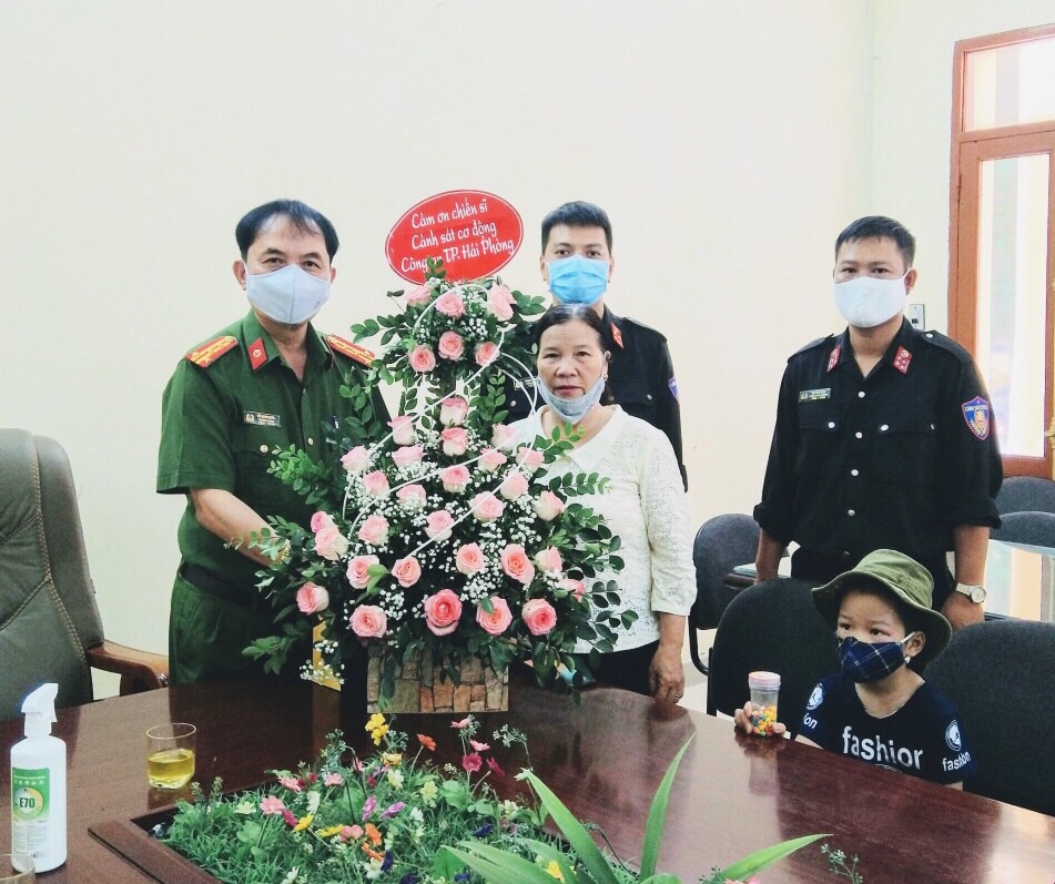 Và sáng 10-8, bà nội chàu Tài đã cùng cháu trực tiếp có lãng hoa tươi thắm đến cảm ơn lãnh đạo, CBCS Phòng Cảnh sát Cơ động.