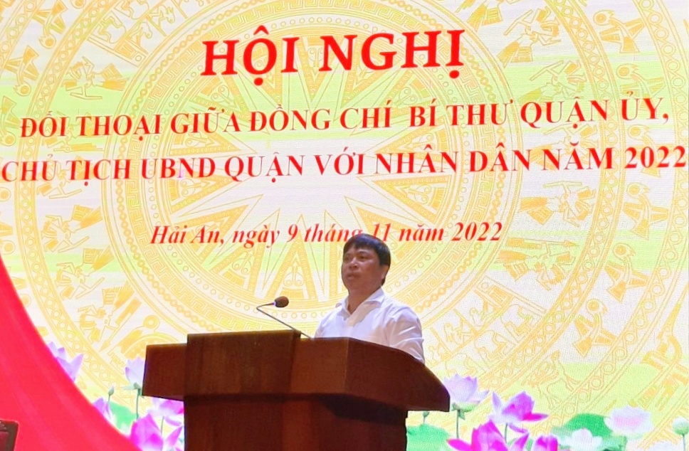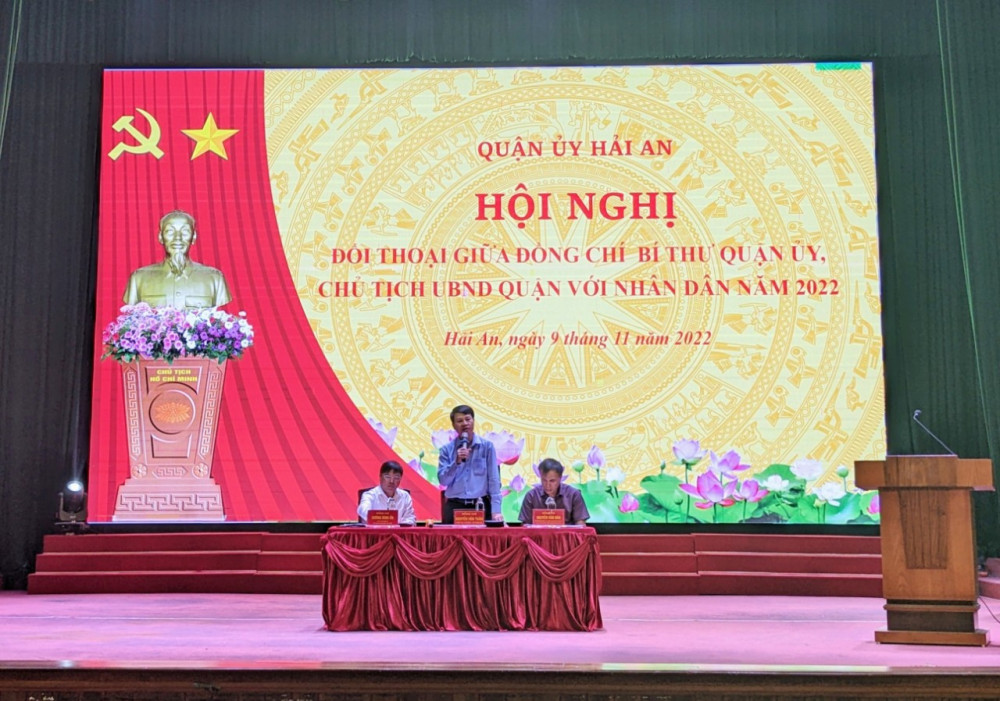 Tại buổi Đối thoại, đại diện Nhân dân các địa phương kiến nghị, phản ánh các nội dung liên quan đến việc triển khai xây dựng công viên cây xanh tại các phường; lộ trình triển khai Dự án xây dựng Trường liên cấp Đông Hải 2; hệ thống điện chiếu sáng tại Khu tái định cư… Nhân dân quận Hải An cũng bày tỏ mong muốn chính quyền quận quan tâm cải tạo, nâng cấp tuyến đường Đoàn Kết, hoàn trả lại mặt đường Hạ Đoạn 2 bị xuống cấp nghiêm trọng do ảnh hưởng trong quá trình thi công cầu vượt khác mức, cải tạo hệ thống thoát nước và cây xanh trên đường Đà Nẵng mỗi khi mưa to là ngập 2-3 ngày không hết, tình trạng cây xanh chĩa ra 2/3 đường, gây nguy hiểm cho người tham gia giao thông… Nhân dân quận cũng kiến nghị, hiện Dự án Chợ hoa Đằng Hải, đã cơ bản giải phóng xong mặt bằng, đề nghị quận sớm triển khai để tiểu thương có chỗ kinh doanh buôn bán ổn định, sớm chấm dứt tình trạng chiếm dụng lòng đường, vỉa hè để kinh doanh buôn bán… cùng một số ý kiến liên quan đến việc cấp Giấy chứng nhận quyền sử dụng đất, việc tăng phụ cấp trách nhiệm cho cán bộ Tổ dân phố…