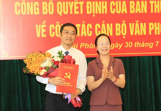 Sáng 30-7, đồng chí Nguyễn Thị Nghĩa – Phó Bí thư thường trực Thành ủy, Trưởng đoàn đại biểu Quốc hội Hải Phòng, chủ trì hội nghị công bố quyết định của Ban thường vụ Thành ủy về công tác cán bộ Văn phòng Thành ủy.