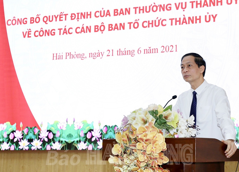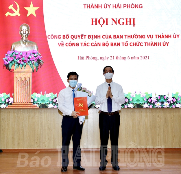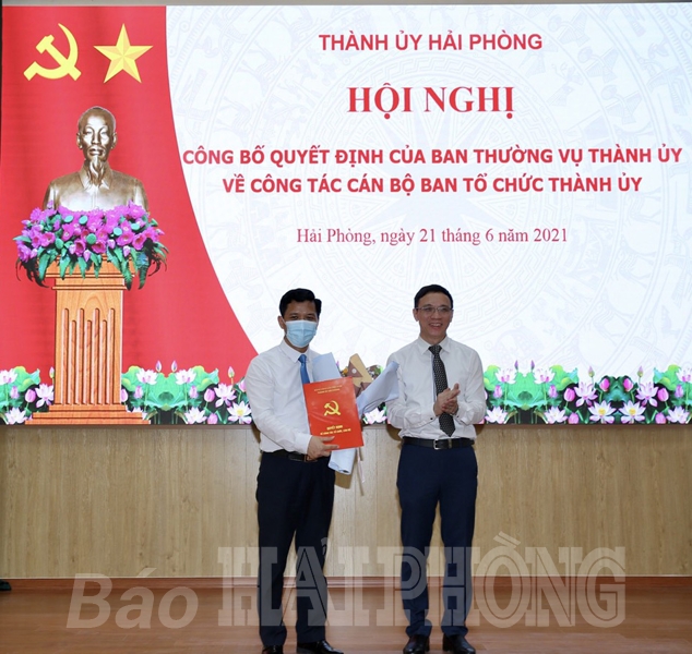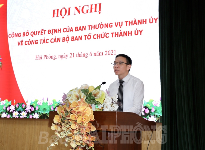 Tại hội nghị, đồng chí Đào Trọng Đức, Trưởng Ban Tổ chức Thành ủy công bố quyết định của Ban Thường vụ Thành ủy về công tác cán bộ Ban Tổ chức Thành ủy. Theo Quyết định số 246-QĐ/TU ngày 18/6/2021, Ban Thường vụ Thành ủy quyết định đồng chí Nguyễn Hồng Vinh, Phó bí thư Thường trực Quận ủy Kiến An thôi tham gia Ban Chấp hành, Ban Thường vụ Quận ủy, thôi giữ chức vụ Phó bí thư Thường trực Quận ủy Kiến An nhiệm kỳ 2020-2025 và điều động, bổ nhiệm giữ chức vụ Phó trưởng Ban Tổ chức Thành ủy.