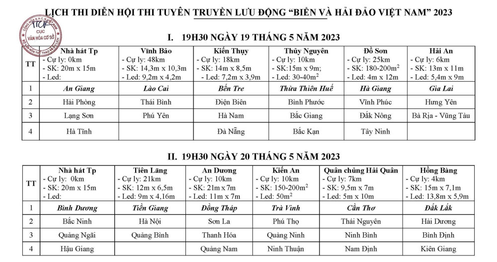 Diễn ra từ ngày 18 đến 21/5/2023 tại thành phố Hải Phòng, trong khuôn khổ Hội thi tuyên truyền lưu động “Biển và Hải đảo Việt Nam” sẽ có các chương trình diễu hành, biểu diễn nghệ thuật, trưng bày triển lãm…