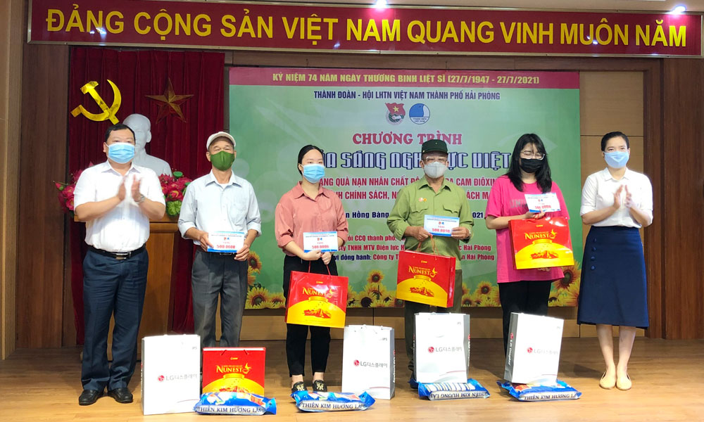 Tại Trường Tiểu học Bạch Đằng, quận Hồng Bàng, Thành đoàn – Hội LHTN Việt Nam thành phố tổ chức Chương trình “Tỏa sáng nghị lực Việt”, trao tặng 30 suất quà trị giá 30 triệu đồng cho nạn nhân chất độc da cam, người khuyết tật trong các gia đình có công.