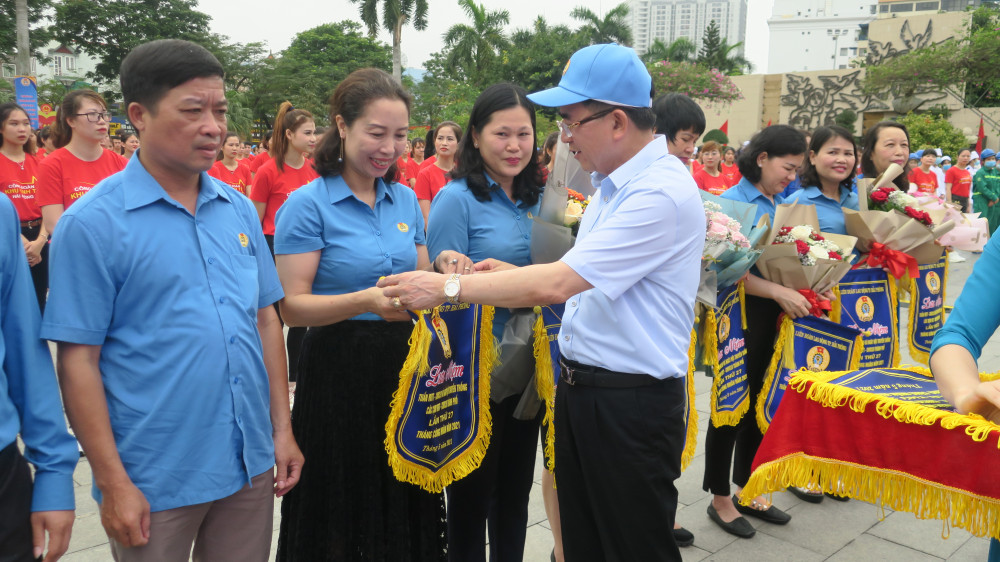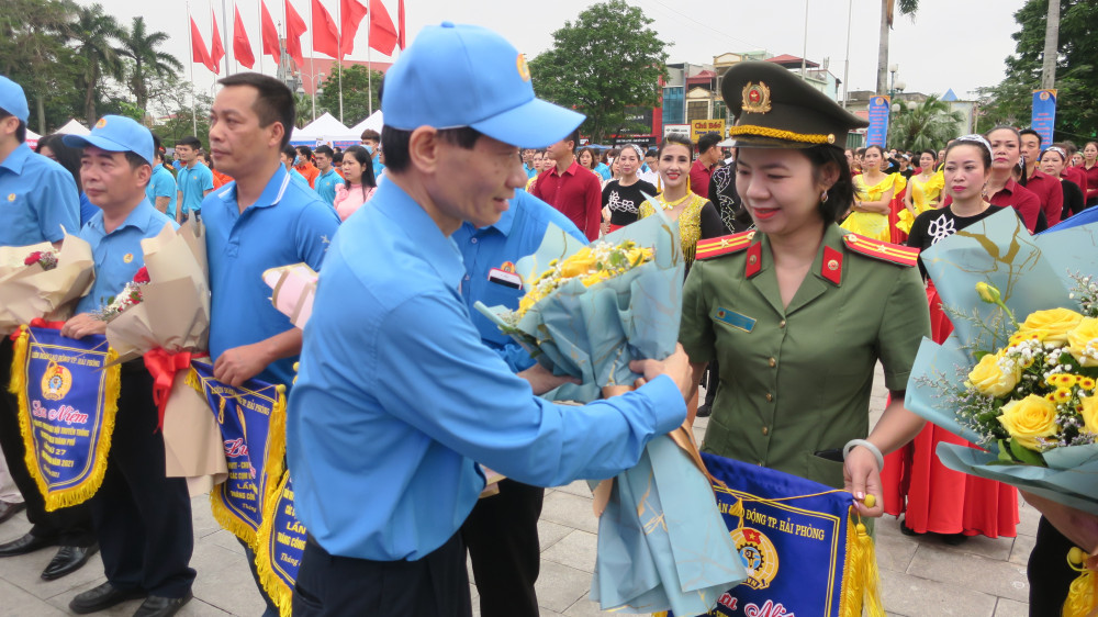 Tham dự chương trình có các đồng chí: Phó Chủ tịch UBND thành phố, Lê Khắc Nam, Phó Chủ tịch Tổng Liên đoàn Lao động Việt Nam, Trần Văn Thuật, cùng đại diện lãnh đạo Liên đoàn Lao động các tỉnh, thành lân cận và hàng nghìn công nhân viên chức lao động thành phố.