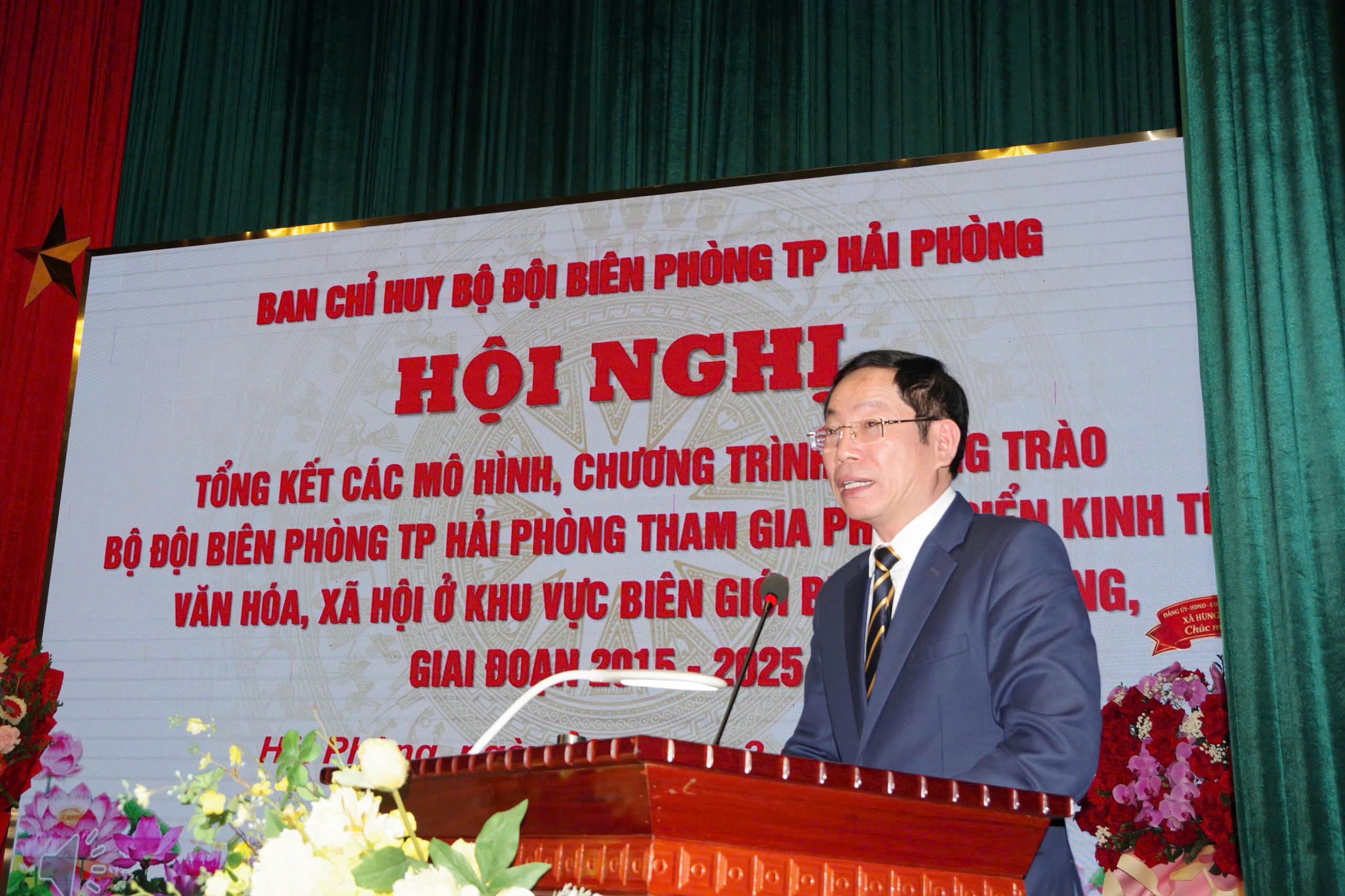 Phát biểu chỉ đạo tại Hội nghị, đồng chí Vũ Tiến Phụng, Phó Chủ tịch UBND thành phố ghi nhận, biểu dương những kết quả Bộ đội Biên phòng thành phố đạt được trong thời gian qua. Phó Chủ tịch khẳng định, các mô hình, chương trình, phong trào của lực lượng không chỉ góp phần xóa đói, giảm nghèo, nâng cao đời sống Nhân dân mà còn là “cầu nối” vững chắc giữa cấp ủy Đảng, chính quyền với Nhân dân khu vực biên giới biển. Để chung sức cùng cấp ủy, chính quyền và Nhân dân thành phố hoàn thành các mục tiêu đề ra, Phó Chủ tịch UBND thành phố yêu cầu Bộ đội Biên phòng thành phố tập trung lãnh đạo, chỉ đạo thực hiện hiệu quả 4 nội dung trọng tâm: chủ động phối hợp với các lực lượng bảo vệ vững chắc chủ quyền, giữ gìn an ninh trật tự; tiếp tục nhân rộng, phát triển các mô hình, phong trào hiệu quả; đẩy mạnh vận động Nhân dân chấp hành chủ trương giải phóng mặt bằng, triển khai các dự án phát triển kinh tế ven biển; xây dựng lực lượng vững mạnh toàn diện, “mẫu mực, tiêu biểu”, đáp ứng yêu cầu nhiệm vụ trong tình hình mới.