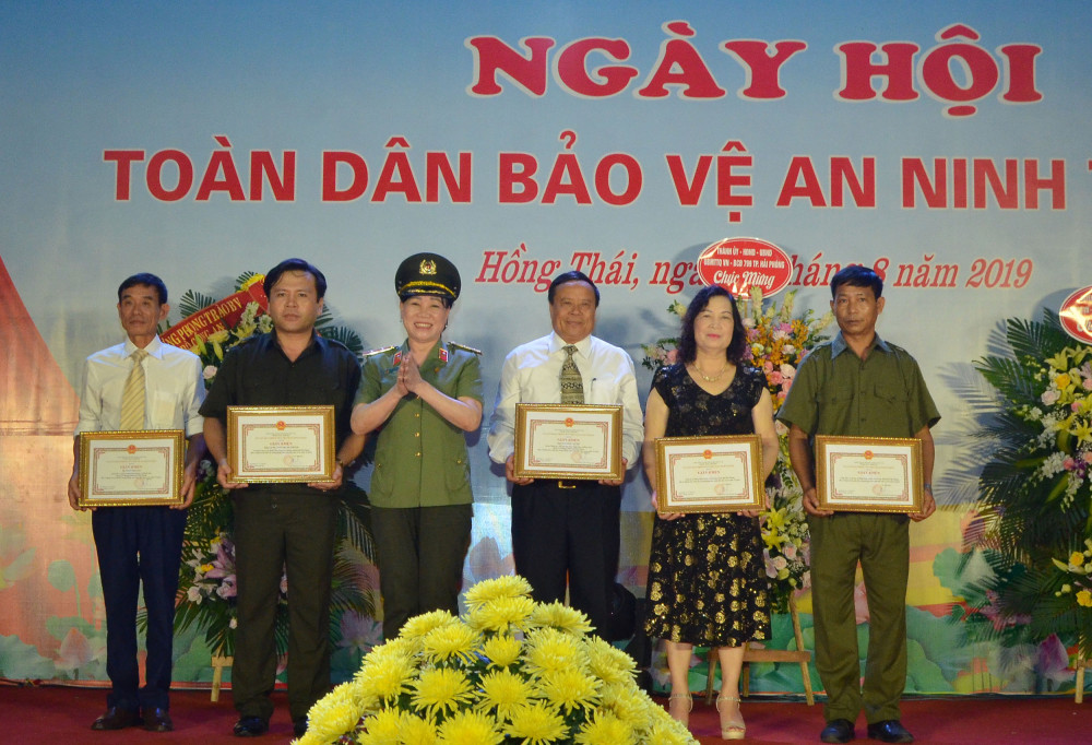 Tại ngày hội, nhiều tập thể, cá nhân có thành tích trong công tác bảo vệ ANTQ được Bộ Công an, UBND thành phố, UBND huyện An Dương, UBND xã Hồng Thái biểu dương, khen thưởng./.
