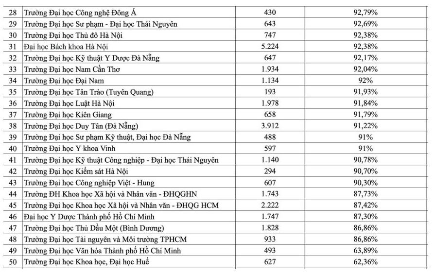Còn tại Trường Đại học Kinh tế Quốc dân, báo cáo tình hình việc làm sinh viên tốt nghiệp năm 2023 cho thấy, tỉ lệ sinh viên tốt nghiệp đã có việc làm dao động từ 80-100%.
