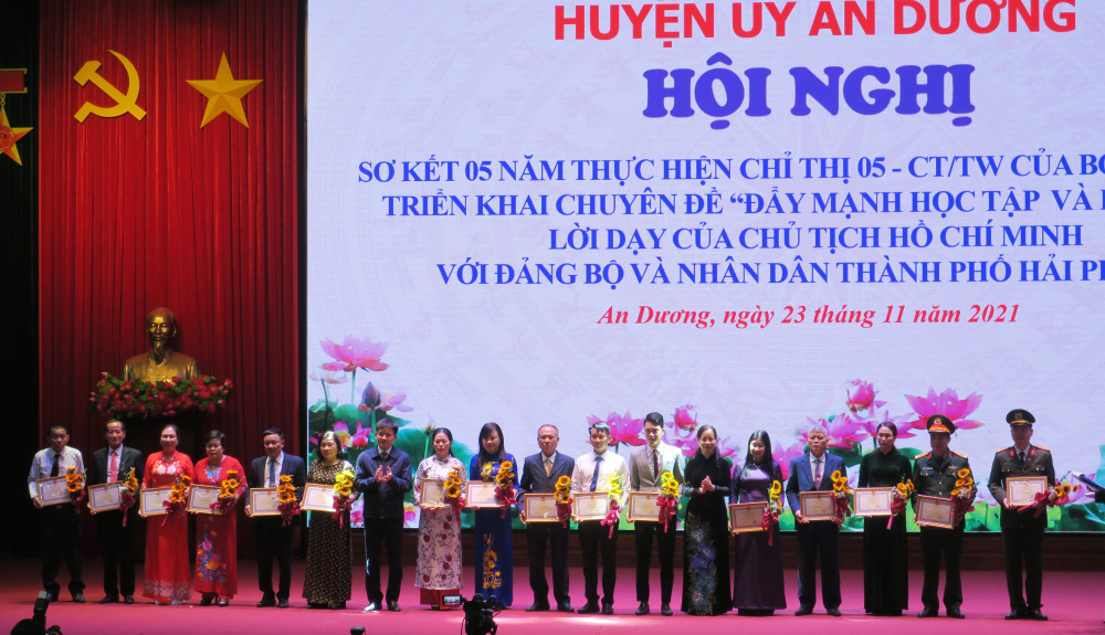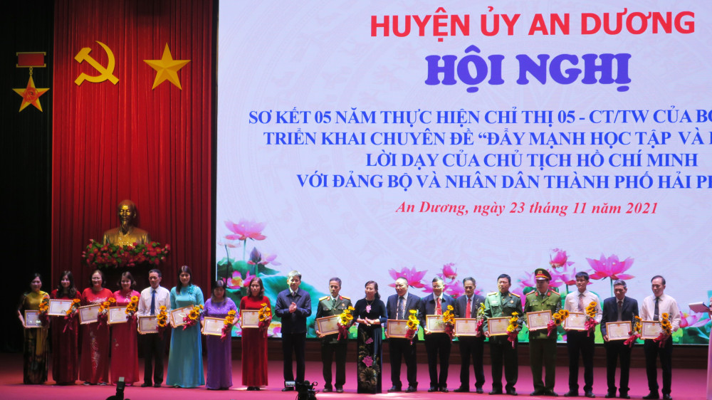 Ghi nhận những nỗ lực trong thời gian qua, Chủ tịch UBND thành phố tặng Bằng khen cho 2 tập thể và 3 cá nhân của Đảng bộ huyện, Chủ tịch UBND huyện An Dương tặng Giấy khen cho 33 tập thể và 36 cá nhân tiêu biểu xuất sắc trong thực hiện Chỉ thị 05-CT/TW của Bộ Chính trị.