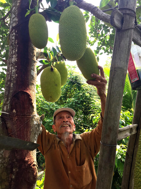 Ngồi dưới tán cây, gió mát rượi, rít điếu thuốc lá, ông Bảy nói với tôi giọng mãn nguyện: “Tao trồng tỉa cho vui, cho con, cho cháu, chòm xóm ăn, có khách khứa thì cây nhà, lá vườn đem lên nhậu, chứ tao với bả mà ăn uống bao nhiêu. Được cái là nhờ vậy mà quanh năm, nhà tao chẳng phải đi chợ. Tao nhờ bán mặt cho đất, bán lưng cho trời mà từng tuổi này vẫn khỏe trân, vác bao lúa năm chục ký đi te te; rượu đế nhâm nhi nửa lít là… chuyện nhỏ”.