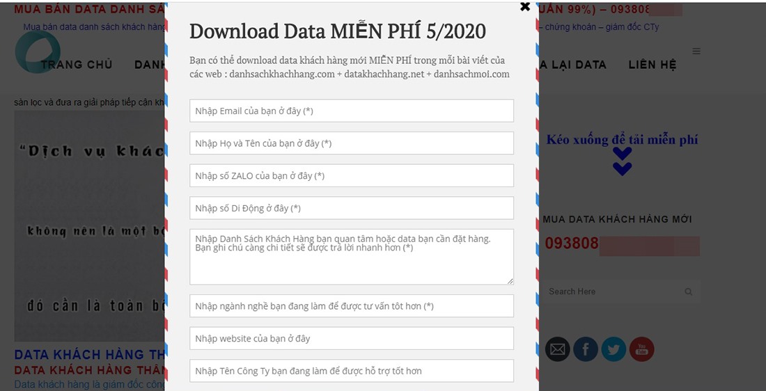 Thậm chí theo tìm hiểu của người viết, khi người dùng được yêu cầu điền các thông tin cá nhân vào một biểu mẫu trên website datakhachhang.net thì được hứa hẹn cho tải xuống dữ liệu khách hàng mới miễn phí từ bộ 3 website danhsachkhachhang.com, datakhachhang.net, danhsachmoi.com. Cho thấy, các đối tượng vận hành 3 website mua bán thông tin cá nhân này có liên hệ chặt chẽ với nhau hoặc cùng là một đối tượng.