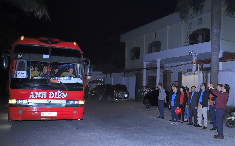 Lãnh đạo Liên đoàn lao động thành phố lưu luyến tiễn chân anh chị em công nhân. Hẹn gặp lại Hải Phòng sau Tết