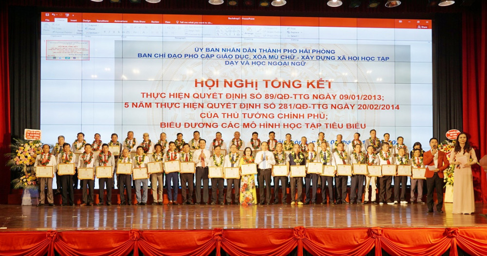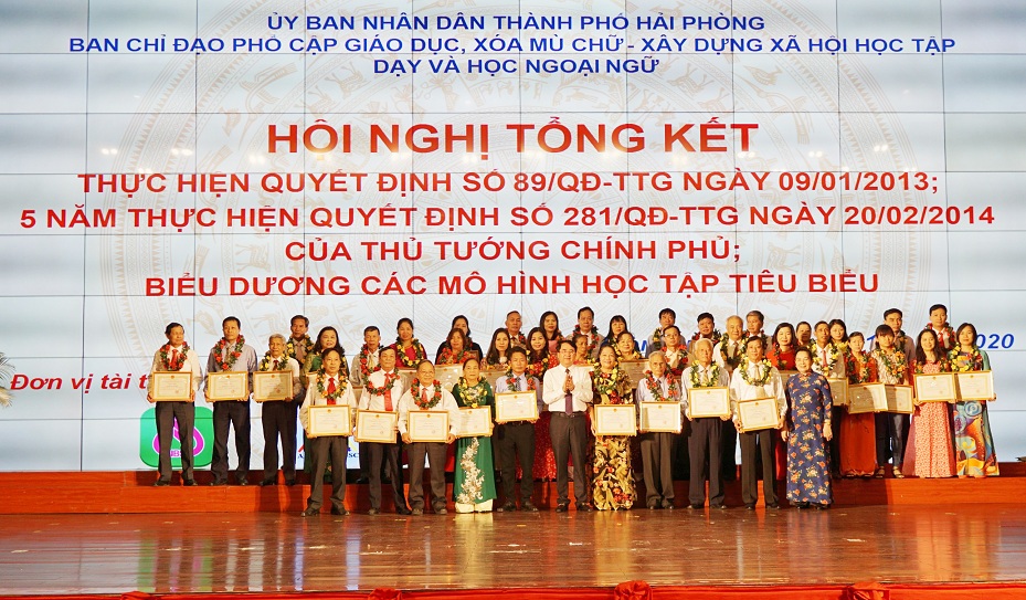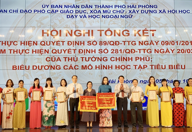 Sáng 5-10, Ban chỉ đạo Phổ cập giáo dục, xóa mù chữ-Xây dựng xã hội học tập-Dạy học và học ngoại ngữ thành phố tổ chức Hội nghị tổng kết thực hiện Quyết định số 89 ngày 9-1-2013 của Thủ tướng Chính phủ phê duyệt Đề án xây dựng xã hội học tập giai đoạn 2012-2020, tổng kết 5 năm thực hiện Quyết định số 281 ngày 20-2-2014 của Thủ tướng Chính phủ phê duyệt đề án “Đẩy mạnh phong trào học tập suốt đời trong gia đình, dòng họ, cộng đồng đến năm 2020”; biểu dương, tôn vinh các mô hình học tập tiêu biểu thành phố Hải Phòng.