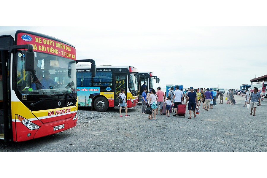 Trong mấy ngày vừa qua, với chủ trương không cho xe từ 29 chỗ trở lên qua phà Gót, thành phố quyết định đưa 20 xe buýt phục vụ vận chuyển miễn phí hành khách từ bến phà Cái Viềng đến thị trấn Cát Bà. Du khách rất phấn khởi khi được phục vụ chu đáo, thuận tiện…