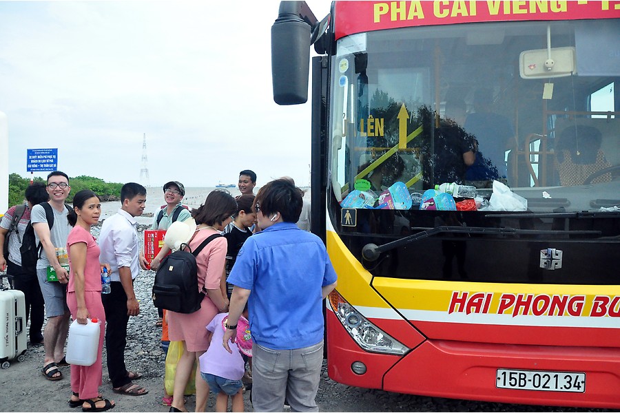 Du khách được thông báo có xe buýt phục vụ chở miễn phí từ bến phà Cái Viềng đến thị trấn Cát Bà rất hào hứng. Tại đầu phà Gót, du khách vui vẻ xếp hàng xuống phà dù mang theo lỉnh kỉnh đồ đạc, bởi họ biết sẽ không còn tình trạng ùn tắc tại bến phà nữa. Anh Trần Anh Kiên, ở phố Đội Cấn (Hà Nội) cho biết, đây là lần thứ 2 anh đi du lịch Cát Bà kể từ ngày 30-4, vì không bị ùn tắc, mất thời gian chờ đợi anh rất phấn khởi. Chuyến đi đầu, đoàn của anh bị tắc hơn 4 giờ tại đầu bến phà. Nhưng nay, xuống xe được sang phà ngay. Nhưng bất ngờ hơn cả, khi du khách xuống xe, ngay lập tức có người của bến phà đưa xe đẩy đến tận nơi giúp đoàn khách hạ đồ. Thậm chí, người của bến phà còn giúp đẩy xe đến tận nhà chờ. Anh Nguyễn Thế Ngọc, cùng đoàn với anh Trần Anh Kiên thốt lên: tôi đi khắp cả nước, chưa bao giờ thấy nhân viên bến phà phục vụ hỗ trợ vận chuyển như ở đây, không đòi hỏi bất kỳ điều gì. Anh rất ấn tượng về tinh thần phục vụ văn minh, lịch thiệp, thân thiện của thành phố.