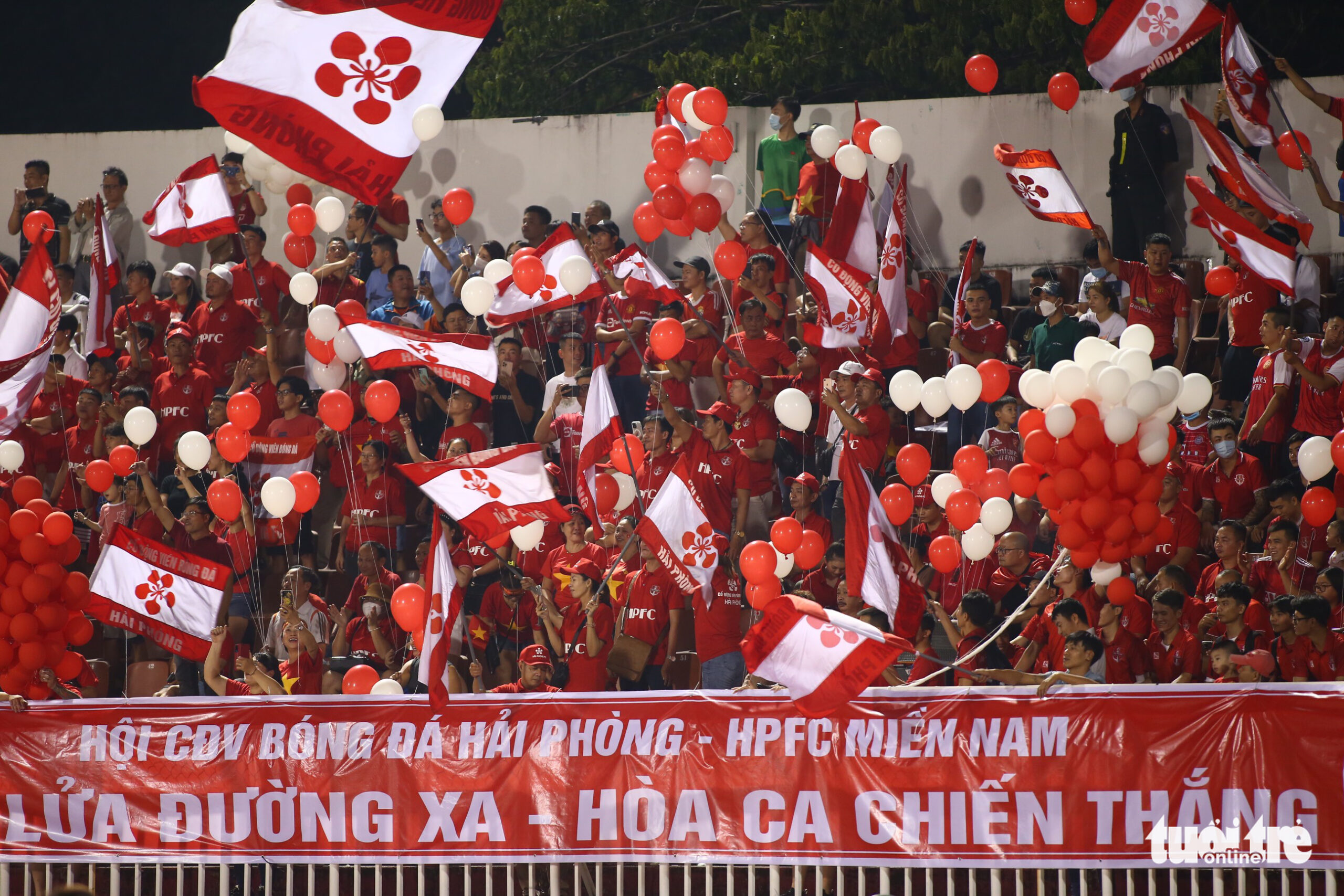 Hội cổ động viên bóng đá Hải Phòng đã chuẩn bị khoảng 4.000 quả bóng bay để thực hiện màn cổ vũ cho đội bóng quê hương, ở trận đấu làm khách trên sân Thống Nhất của CLB Sài Gòn.