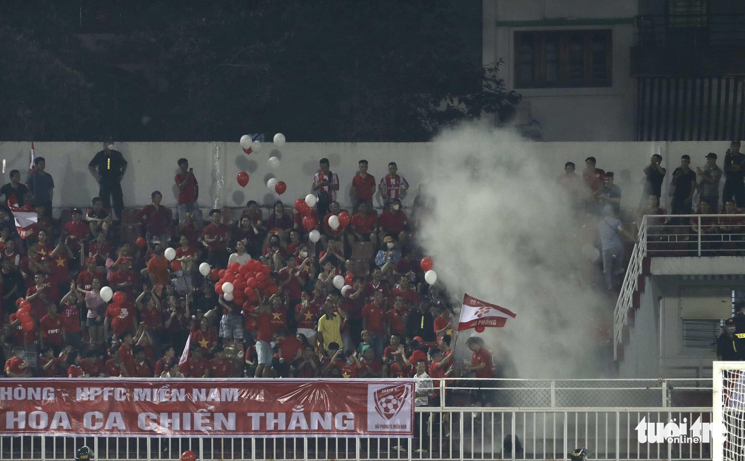 Tối 28/10, trước trận Sài Gòn-Hải Phòng, một cổ động viên bóng đá Hải Phòng bị bỏng ở mặt sau khi gặp sự cố bóng bay sử dụng để cổ vũ trận đấu phát nổ.
