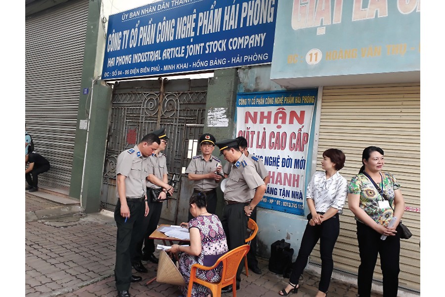 Liên quan đến tranh chấp giữa các thành viên của Công ty CP Công nghệ phẩm Hải Phòng về con dấu, người đại diện pháp luật của công ty diễn ra nhiều năm nay và qua nhiều cấp Tòa án xét xử. Trên cơ sở bản án phúc phẩm năm 2014 của Tòa án nhân dân (TAND) tối cao và văn bản giải thích số 209 ngày 11-12-2015 của TAND tối cao, Cục THADS thành phố thực hiện thi hành án (THA). Song, vụ việc phức tạp, kéo dài, đương sự không tự nguyện THA, có đơn khiếu nại liên tục. Tháng 5-2018, TAND tối cao thông báo chấm dứt hiệu lực Công văn số 209 kể trên, Cục THADS thành phố thu hồi quyết định THADS đối với vụ việc Công ty CP Công nghệ phẩm Hải Phòng. Như vậy, vụ việc này kéo dài nhiều năm và Cục THADS thành phố thay đổi nhiều quyết định THA liên quan. Hiện, vụ việc Công ty CP Công nghệ phẩm Hải Phòng chưa được giải quyết triệt để, ảnh hưởng đến hoạt động kinh doanh và quyền lợi của người lao động.