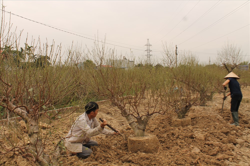 Theo ông Lê Đình Tuân, từ thời điểm đào được khách thuê, người trồng đào phải chăm sóc, bảo đảm đến khi giao hàng cho khách (từ 20 đến 26 tháng Chạp) nụ đào to đều, hoa nở tầm 30% thì mới đạt tiêu chuẩn. Sau đó, tầm mùng 7 Tết trở ra, các vườn lại theo lịch hẹn đến thu gốc về để tiếp tục chăm sóc cho vụ sau.